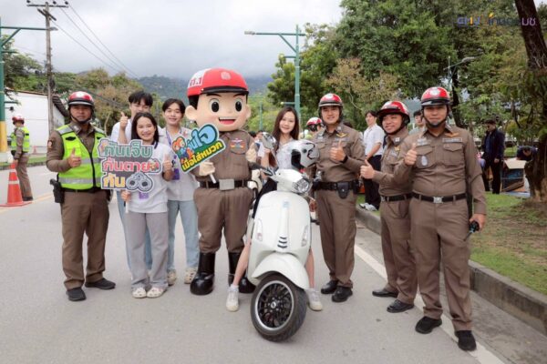 กลุ่มงานจราจร ตำรวจภูธรจังหวัดเชียงใหม่ รณรงค์สวมหมวกนิรภัย 100% ร่วมภาคีเครือข่ายตั้งจุดตรวจส่งเสริมความปลอดภัย