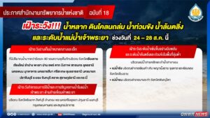 4. ประชาสัมพันธ์สถานการณ์น้ำ และแจ้งเตือนล่วงหน้า ให้ประชาชนที่คาดว่าจะได้รับผลกระทบ เตรียมพร้อมในการขนของขึ้นสู่ที่สูงหรืออพยพได้ทันท่วงทีหากเกิดสถานการณ์